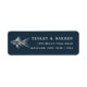 Coastal chic return address labels feature your return address details in ivory lettering on a rich navy blue background, accented with a vintage etched style fish illustration.
