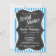 Deep Sky Blue Vertical Stripes; Chalkboard look Invitation