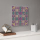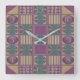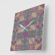 Out of this world design in layers of colours. These dramatic clocks add a touch of flair to your decor. Inspired by grandmother's quilt designs. Squares from abstracts, stripes and circles in mauve with beige background. Cool gift for someone with no sense of time! Or for someone who would like to turn back the hands of time. You may never again be sure what time it is with this goofy clock, but it will definitely become a conversation piece!