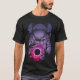 I give wanted to give this a 4 instead of a 5 because these Basic DARK T0shirts run unexpectedly SLIM or Narrow. Which is great if you do not have a potbelly, but I have a paunch. It isn't the shirt's fault that I've got a beer belly. The design and shirt itself is a quality cotton shirt. The color is more of a deep purple, but still a very pretty color. The Basic DARK T-shirts run a bit SLIMMER than the Basic Ts. The neck is a fraction narrower (or seems to be narrower) also. I'm a paunchy middle-aged woman and my neck is 12 inches (31cm) thick and the neckline fell about the same as in the photo of the man, and I had the desire to tug it a bit. So if you're a thick necked man or like loose shirts, be aware these are slimmer shirts. Once I get rid of my lockdown paunch it'll look great. The shirt washed well in cold water with no apparent bleeding. We don't have a dryer, so it hung dry. Did not shrink. Love the colors and the design. The design looks smaller on my shirt than it does on the model on-line. But still, it looks good on the shirt. The printing looks as it does on the model, just the size seems fractionally smaller. Washed garment in cold water, hung dry and design appeared unaffected.