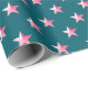 Deep Teal Blue PInk Stars Wrapping Paper