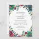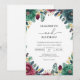 Evokes a mood of rich, organic elegance. Lush greenery and deep jewel-toned blooms frame the composition, suggesting a sophisticated, nature-inspired event. The design feels both romantic and grounded.