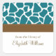 Deep Teal Giraffe Pattern Square Sticker