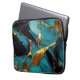 Deep Teal Marble with Bold Gold Veins Laptop Sleeve