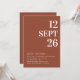 This elegant wedding invitation template features a warm deep terracotta (also known as rust clay) background, complemented by clean white typography. The rich, earthy tone creates a cozy, autumn inspired vibe. The template is fully customizable, allowing you to add your own details, including the wedding date, couple’s names, venue information, and more. On the back, a photo frame allows you to add a personal touch with your own image. A QR code is also included for guests to easily access RSVP and event details. This wedding invitation template is ideal for couples planning a fall wedding, combining modern design with the warmth of the season. Available as both a printed card and a digital download.