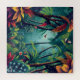 The scene is composed of layers of lush, varied foliage with a highly dramatic and unnatural colour palette, featuring: