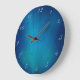 This beautiful clock features background art depicting an underwater scene of light shimmering though dark water with small bubbles rising up. It's a very peaceful and serene look. The artwork is complemented with hours marked with numerals in an elegant script in light blue.