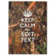 Your personalised Keep Calm saying on a deep fall season camouflage decor. A personalised Keep Calm style saying on a one of a kind gift. Humourous or whimsical try on your creative words on two editable lines of text. Remember to use CAPITAL letters for best results.