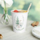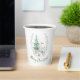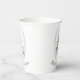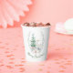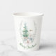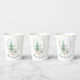 Christmas themed paper cups, with beautiful watercolor graphics of a white deer and Christmas tree. Custom green text, on the bottom, can be personalised to read what you want.