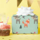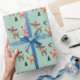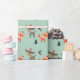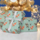 A cute and festive wrapping paper with a fun whimsical pattern. A deer and fox wearing santa hats. Holly and pine tree illustrations also add some extra Christmas holiday flair.