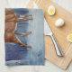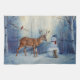 Deer and Happy Snowman Winter Holiday Scene Tea Towel