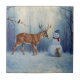 Deer and Happy Snowman Winter Holiday Scene Tile