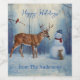 Deer and Happy Snowman Winter Holiday Scene Wine Label