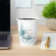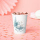 Christmas themed paper cups, with beautiful watercolor graphics of a white deer and pine trees. Custom blue text, on the bottom, can be personalised to read what you want.