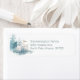 Christmas themed return address labels, with beautiful watercolor graphics of a white deer and pine trees, done in soft pastel colours. Personalise the dusty blue coloured text with your information.