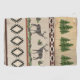 Beautifully painted in acrylic watercolors, this design is a western mountain lodge inspired pattern that has deer with antlers, stylized fir trees in a forest, rustic weathered wood paired with Native American tribal design patterns and pine cones with pine needles. Art painted by internationally known and licensed artist, Audrey Jeanne Roberts, copyright.