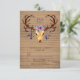 Rustic southwestern wedding response card RSVP with feather and jewel draped deer skull on a rustic wood background. This beautiful and rustic ornate deer antler deer skull wedding RSVP response card is easily customised for your event by simply adding your details in the font style and colour and wording of your choice.