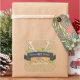 Use for envelope seals or favour gift bags for your bridal shower or wedding reception. Perfect for a Rustic, country fair style outdoor wedding. If your day is planned to be informal and in nature such as at a park, a lake or the forest this antique barn style will fit right in. A chipboard paper bag background with its natural soft brown colouring has a vintage sunburst design element with a chalkboard ribbon banner that says, "Mr. & Mrs." Hand watercolored wildflowers in pink, lavender, purple orange and yellow are painted by Audrey Jeanne Roberts. They are paired with a set of deer antlers and hand drawn leaf corner swirling script scrolls. On the reverse side is the same design with your names in chalk on the banner.