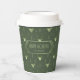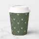 This paper cup features a trendy pattern of deer head silhouettes with curving antlers, stylized arrows and tiny snowflakes in a textured-effect shades of moss green on a dark green background. Optional 'Happy Holidays' text and a label have been provided to add your name and/or other text. Search ID861 thru ID864 to see additional color options and other products in this modern, Christmas design set.