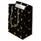 This gift bag features a trendy pattern of deer head silhouettes with curving antlers, stylised arrows and tiny snowflakes with a textured-effect in shades of gold on a black background. Optional 'Happy Holidays' text and a label have been provided to add your name and/or other text. Search ID861 thru ID864 to see additional colour options and other products in this modern, Christmas design set.