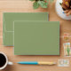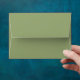 This envelope interior features a trendy pattern of deer head silhouettes with curving antlers, stylised arrows and tiny snowflakes in a textured-effect in shades of moss green on a darker green background. Exterior colour can be changed to any colour. A template has been provided to add your name and address on the back flap. Search ID861 thru ID864 to see additional colour options and other products in this modern, Christmas design set.