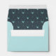 This envelope interior features a trendy pattern of deer head silhouettes with curving antlers, stylised arrows and tiny snowflakes with a textured-effect in shades of watchet blue on a deep teal background. Exterior colour can be changed to any colour. A template has been provided to add your name and address on the back flap. Search ID861 thru ID864 to see additional colour options and other products in this modern, Christmas design set.