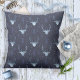 This throw pillow features a trendy pattern of deer head silhouettes with curving antlers, stylized arrows and tiny snowflakes in shades of sky blue and slate on a navy blue background. Search ID861 thru ID864 to see additional color options and other products in this modern, Christmas design set.