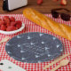 This paper plate features a trendy pattern of deer head silhouettes with curving antlers, stylized arrows and tiny snowflakes in shades of sky blue and slate on a navy blue background. Optional 'Happy Holidays' text and a label have been provided to add your name and/or other text. Search ID861 thru ID864 to see additional color options and other products in this modern, Christmas design set.