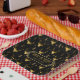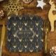 This paper plate features a trendy pattern of deer head silhouettes with curving antlers, stylized arrows and tiny snowflakes with a textured-effect in shades of gold on a black background Optional 'Happy Holidays' text and a label have been provided to add your name and/or other text. Search ID861 thru ID864 to see additional color options and other products in this modern, Christmas design set.