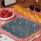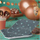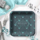This paper plate features a trendy pattern of deer head silhouettes with curving antlers, stylized arrows and tiny snowflakes with a textured-effect in shades of watchet blue on a deep teal background. Optional 'Happy Holidays' text and a label have been provided to add your name and/or other text. Search ID861 thru ID864 to see additional color options and other products in this modern, Christmas design set.