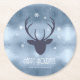 Deer Antlers Silhouette & Snowflakes Blue ID861 Round Paper Coaster