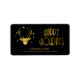 This label design features deer antlers silhouette and snowflakes in shades of gold on a black background. Optional 'Happy Holidays' text and a template have been provided to add your name and address. Search ID861 thru ID864 to see additional colour options and other products in this modern, Christmas design set.
