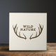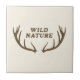 A ceramic tile with a brown deer antlers illustration and a fully customisable text: “Wild Nature” in rustic style on a light beige background! Add a touch of wildlife nature to your home decoration!