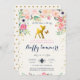 A gold foiled deer surrounded by a frame of garden woodland flowers a little butterfly friend