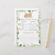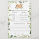 Deer themed baby shower predictions and advice game card features a watercolor deer illustration and watercolor greenery eucalyptus garland and elegant handwritten style font.