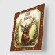 This rustic country square wall clock is perfect for adding a personalised touch to your cabin, lodge or home that features nature / animal decor. It shows a vintage image of a buck deer / reindeer with large antlers, recolored to add brightness and clarity, nestled between pine tree boughs. The background is made to look like a slightly-torn paper attached to a wood grain. Gold-coloured dots mark the time.