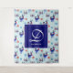 A Christmas tapestry with a repeating pattern. Illustrated with a pair of blue scandinavian deer wearing red scarves. With decorative markings on their bodies. As well as a trio of red and blue christmas trees with a star on top. Fancy snowflakes sprinkled around. A square layered over top with your personalised monogram initial and name.