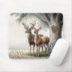 A buck and a doe deer stand gracefully beside a large, old tree with a heart carved into its trunk