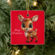 Deer, Fawn, Doe 🦌 🎄 Cute Merry Christmas, Red Ceramic Ornament