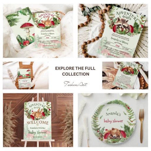 Adventure awaits forest mushroom bear baby shower collection