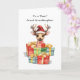 This endearing card is designed to bring a smile to a great granddaughter's face, featuring an adorable deer adorned with a cute Santa hat. With its gentle expression and playfulness, the deer embodies the festive spirit, surrounded by a whimsical array of holiday presents. This delightful scene is a loving reminder of the special bond shared between great-grandparents and their beloved great granddaughter, evoking warmth and joy with every glance.