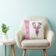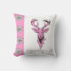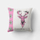 Accent your home with this stylish and elegant modern country style custom Designer Pillow featuring a pink deer head and antlers on white background and a soft pink side stripe decorated with white alpine Edelweiss flowers. Text saying "Country Life". Beautiful gift idea and home decor also for Christmas or any other occasion. Handmade in the U.S.A. !!! A beautiful gift for your friends, family All American MoJo products are produced by sustainably employed single moms in the USA and contribute to breaking the cycle of poverty for single moms and their children.