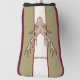 This custom golf club cover for your putters has a brown deer head with antlers outlined in burgundy red with black etchings on his face on a striped background in white burgundy red, and tan. Customise your name with the template.