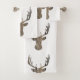A deer head silhouette of rustic brown wood on white makes a great woodland themed towel set, or choose just the hand towel for kitchen or bath.
