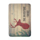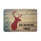 Personalised bath mat with a rustic style. Designed with a deer head with antlers, made of red plaid. An image of wood planks with green ivy leaves for the background gives it an outdoorsy country feel.