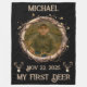 Celebrate a momentous occasion with this personalized fleece blanket, commemorating a young hunter's first successful deer hunt. Featuring a heartwarming photo framed by rustic branches and leaves, this blanket captures the spirit of the outdoors and the pride of a first catch. The design includes the hunter's name, the date of the hunt, and the triumphant phrase 'My First Deer,' making it a cherished keepsake. Perfect for young adventurers and proud parents, this cozy blanket is a beautiful reminder of that special day in the woods. Keep warm while reminiscing about this unforgettable hunting experience.