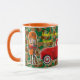 Deer Hunter Nutcracker with Little Red Truck mug. Featuring the original "Nutcrackers with Little Red Trucks" artwork of Rick Ellinger. The perfect gift for the nutcracker collector, little red truck collector, or deer hunter on your gift list. Or for your own collection! Text: "Hunting is my Favourite Season"