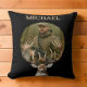 Celebrate your love for hunting with this eye-catching throw pillow. This design highlights a photograph of a skilled hunter adorned in camouflage, positioned with a magnificent deer's antlers as a regal frame. The natural forest setting enhances the wilderness theme, while your name appears at the top, adding a personal touch. It's an ideal decor item for anyone who appreciates the art of hunting and the tranquility of the wild.