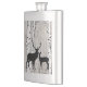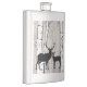 A black silhouette antlered buck and doe, birch trees, and foggy forest thicket. There's a heart carved into the largest birch tree with initials that you can customise!