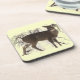 This set of cork coasters features a delicate brown white-tailed deer moving through the snowy winter woods. She has stopped and turned her head because she heard a noise. Her big ears are alert. The face has white markings around the eyes and nose.